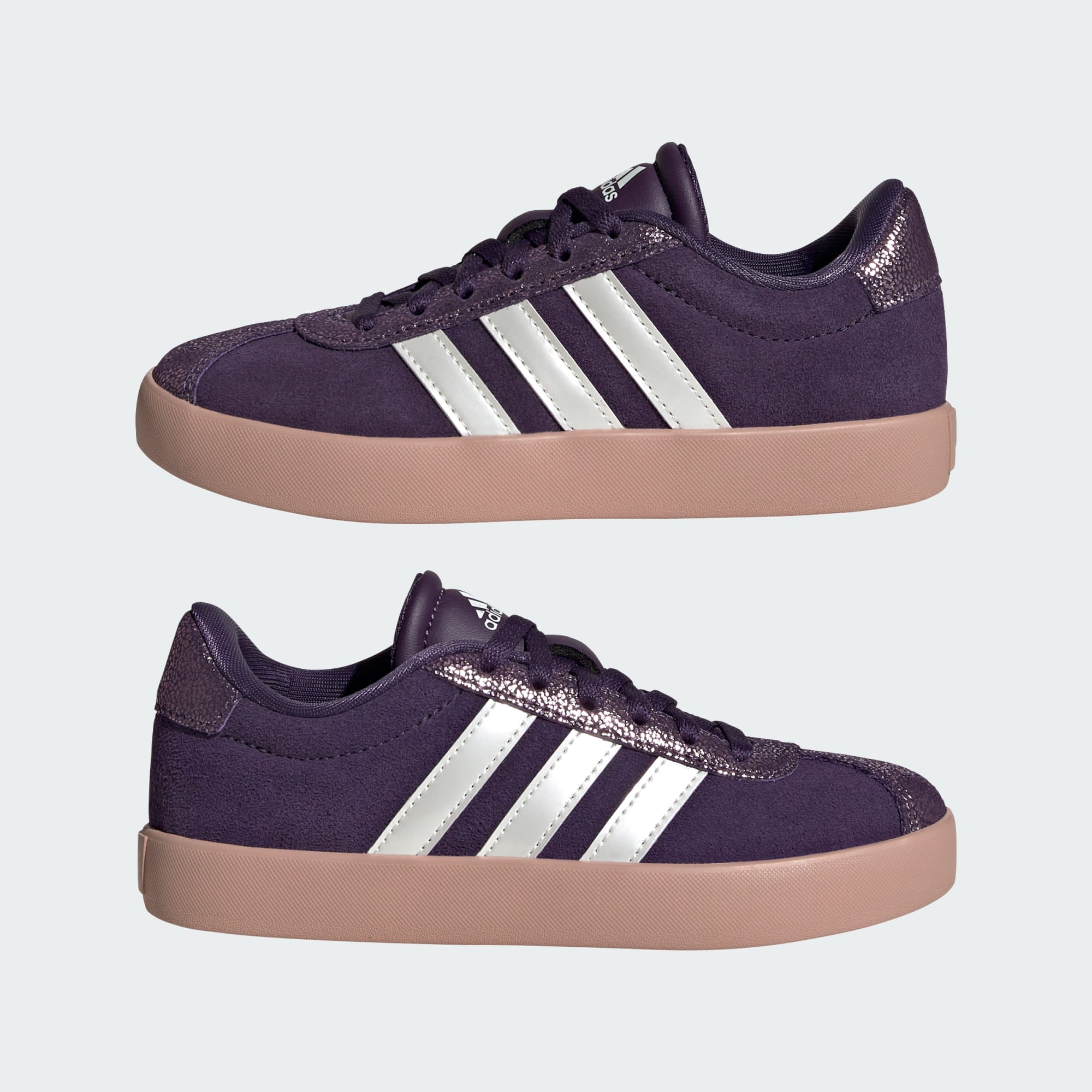 adidas VL Court 3.0-skoene for barn lages for eventyrene, og er perfekte for hverdagsleken. T-tådesignet og den klassiske lisselukkingen gir dem en sporty stil som barna kommer til å elske. Overdelen av semsket og syntetisk skinn fôres med mykt tekstil som leverer komfort hele dagen, og yttersålen av gummi som ikke sverter lar barna løpe og leke uten å etterlate seg spor.