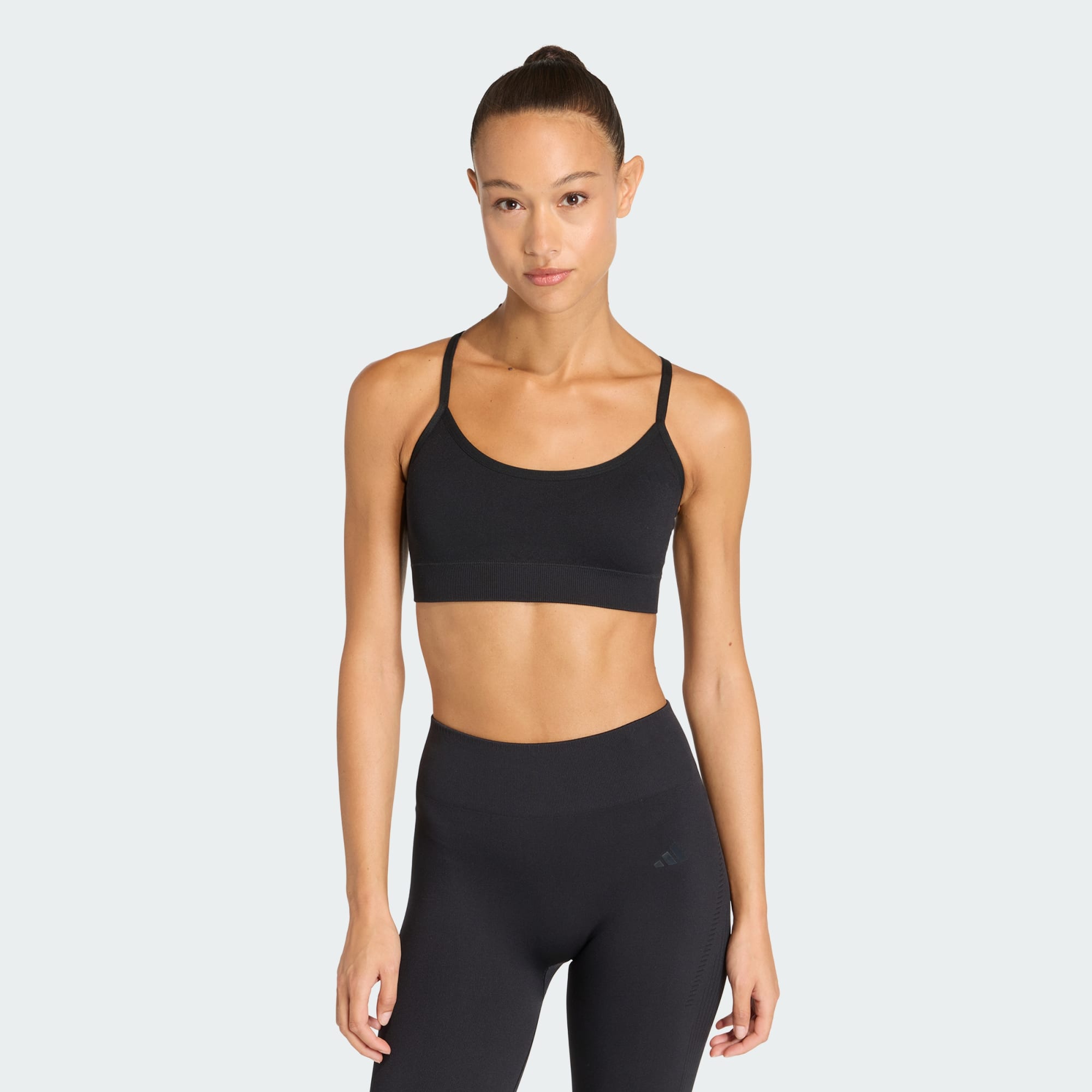 Føl deg støttet og selvsikker mens du trener og svetter, i Workout Essentials Knit Light Support Padded-BH-en. Denne sømløse BH-en designes i tråd med adidas sin forpliktelse til stil og funksjon, og lage av mesh-stoff for pustende egenskaper og en flatterende passform. Climacool-teknologien bidrar til å holde deg tørr og kjølig. BH-en har uttagbar vattering som passer den personlige stilen din, kryssende stropper for å avlaste trykket på øvre del av ryggen, og konstruerte hull rundt armene for enkel bevegelsesfrihet. Denne sømløse og støttende BH-en designes for å føles kjølig og komfortabel under økter på gulvet, kardio og andre treningsaktiviteter, og er et allsidig tillegg til treningsgarderoben din. Ta en tur på treningssenteret sammen med adidas, og kjenn på oppmerksomheten til detaljene som støtter den aktive livsstilen din.