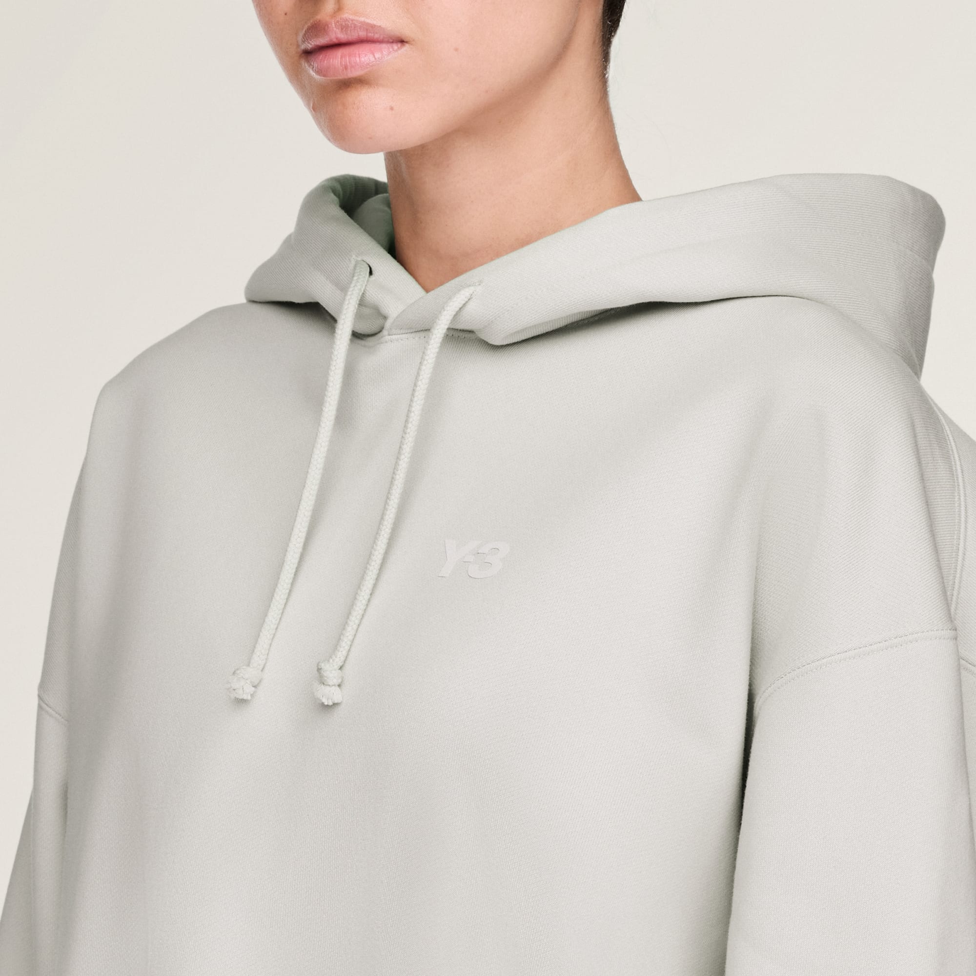 Et basisplagg fra Y-3 får en frisk oppdatering. Den børstede, romslige hettegenseren av frotté har avslappet form som er laget i mykt frottéstoff av bomullsblanding. En tonal og myk Y-3-logo pryder forsiden.