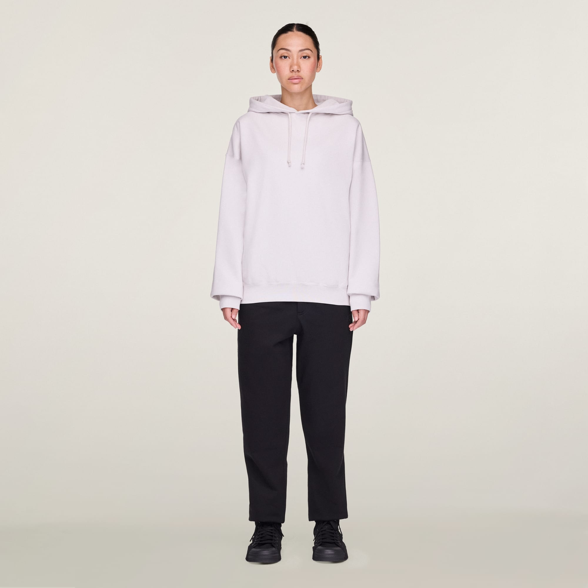 - Pullover med hette og strammesnor