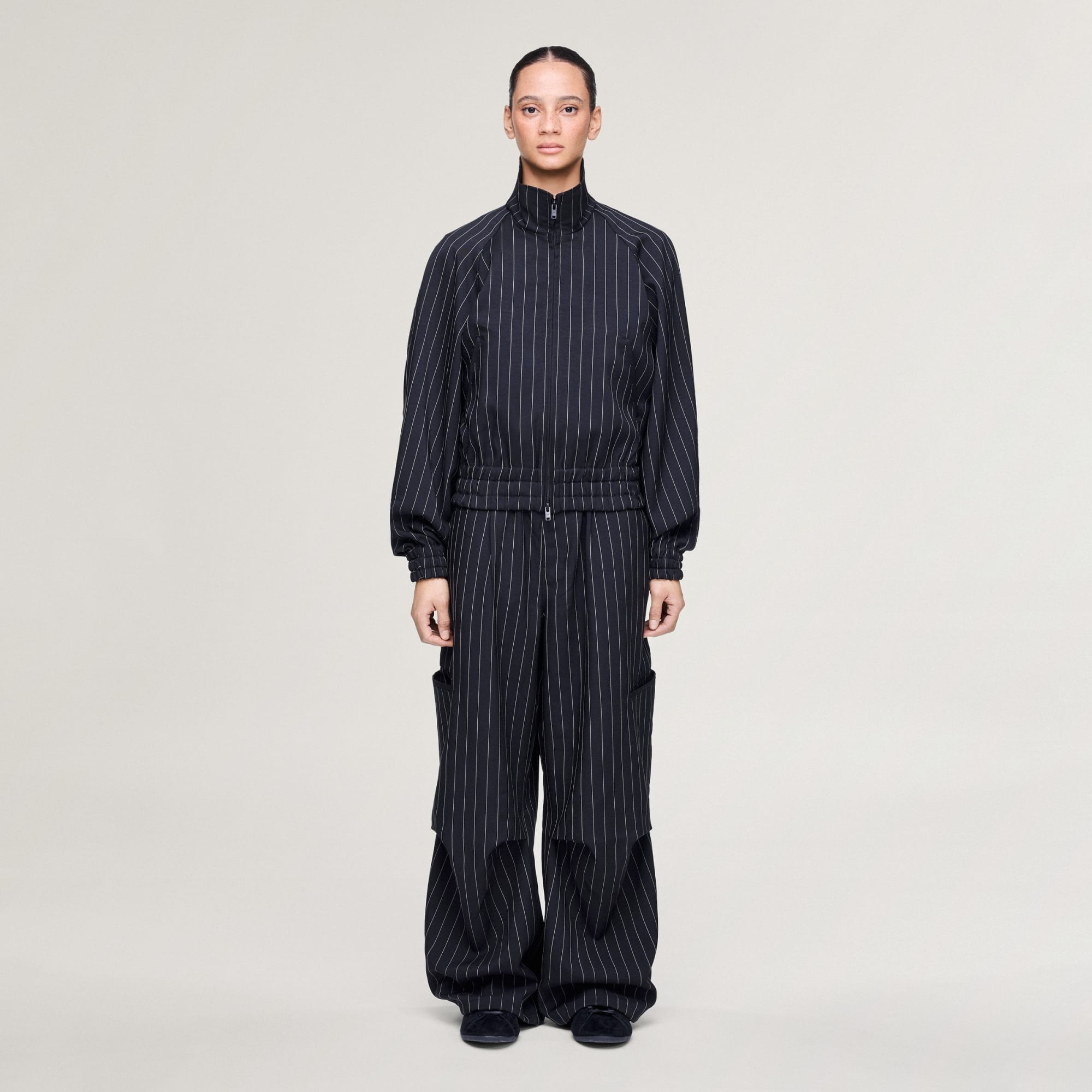 Bukse med løs passform og nålestripet design, laget for allsidig styling.